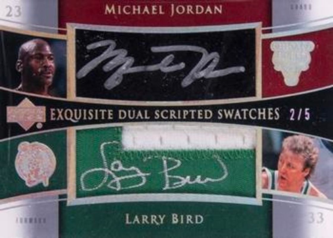 Larry Bird / Michael Jordan 2004 Upper Deck Exquisite Collection #SS2-JL Dual Scripted Swatches /5 RAW Price Guide