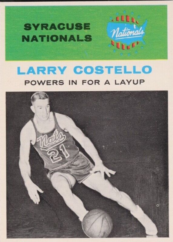 Larry Costello's Basketball cards are available in at least 2 sets. Larry Costello's biggest 7-day price movers are 1961 Fleer #48 In Action, 1957 Topps #33 Base, and 1961 Fleer #9 Base.
