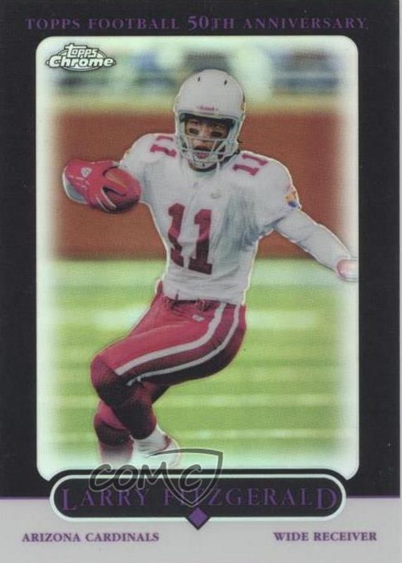 This card is 1 of 3 Larry Fitzgerald's card variations in the 2005 Topps Chrome set being tracked by Sports Card Investor, including Refractor, and Gold X-Fractor /399.