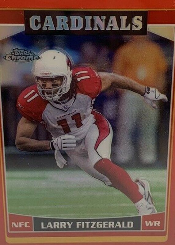 This card is 1 of 4 Larry Fitzgerald's card variations in the 2006 Topps Chrome set being tracked by Sports Card Investor, including Refractor, Black Refractor /199, and Blue /50.