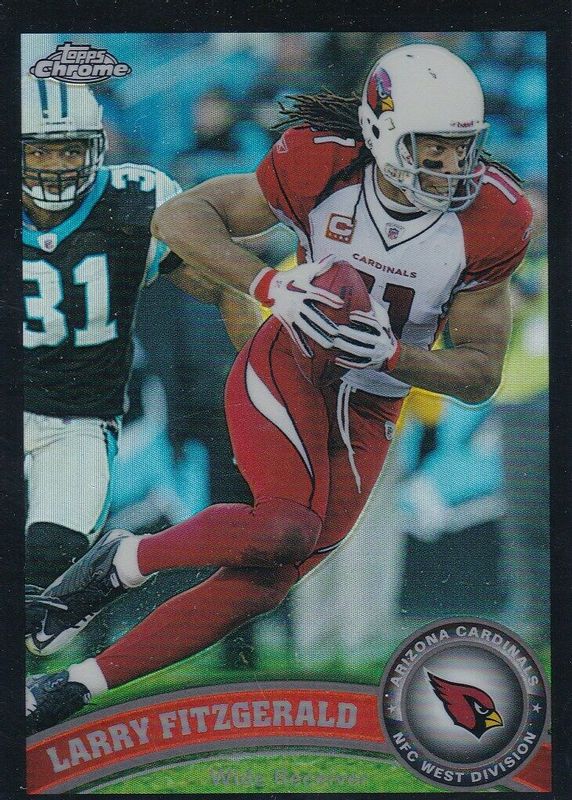 This card is 1 of 16 Larry Fitzgerald's card variations in the 2011 Topps Chrome set being tracked by Sports Card Investor, including Base, Orange Refractor, Refractor, X-Fractor, and Purple Refractor /499.