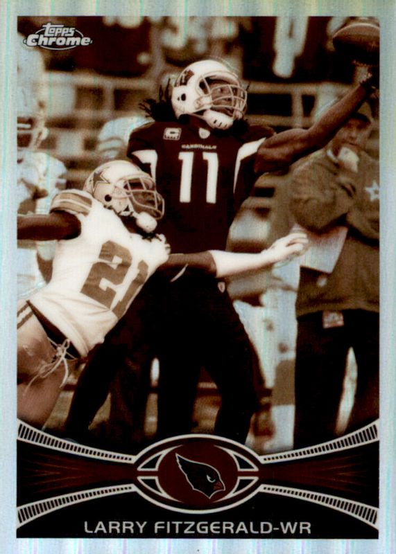 This card is 1 of 12 Larry Fitzgerald's card variations in the 2012 Topps Chrome set being tracked by Sports Card Investor, including Orange Refractor, Refractor, X-Fractor, Camo Refractor /499, and Purple Refractor /499.