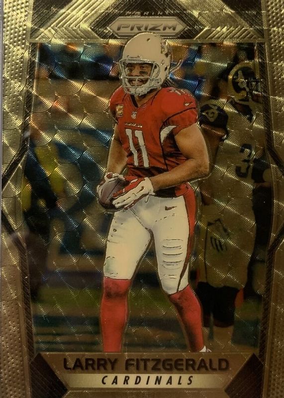 This card is 1 of 5 Larry Fitzgerald's card variations in the 2017 Prizm set being tracked by Sports Card Investor, including White Sparkle /(SSP), Gold /10, FOTL Bronze Stars /(Print Run: 6), and Black Finite /1.