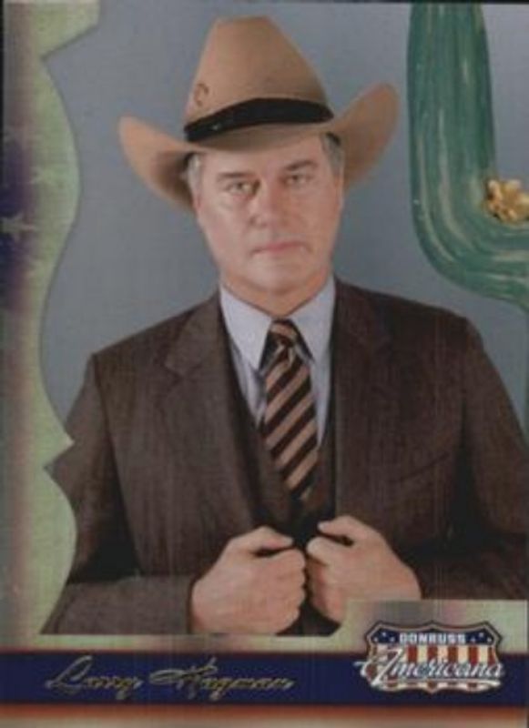 The Larry Hagman 2007 Donruss Americana #40 Base card is 1 of 23 Larry Hagman's card variations in the 2007 Donruss Americana set being tracked by Sports Card Investor, including Retail, Silver Proofs /250, Silver Proofs Retail /250, Gold Proofs /100, and Gold Proofs Retail /100.
