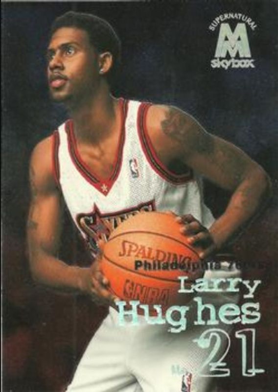 The Larry Hughes 1998 Skybox Molten Metal #138 Base Rookie card is 1 of 8 Larry Hughes' card variations in the 1998 Skybox Molten Metal set being tracked by Sports Card Investor, including Xplosion, Supernatural - Fusion /250, Supernatural - Titanium Fusion /40, Autographics, and Fusion /250.