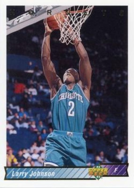 The Larry Johnson 1992 Upper Deck #287 Base card is 1 of 6 Larry Johnson's card variations in the 1992 Upper Deck set being tracked by Sports Card Investor, including Base, All Division Team, All Rookie Team, Award Winner Holograms, and Jerry West Selects.