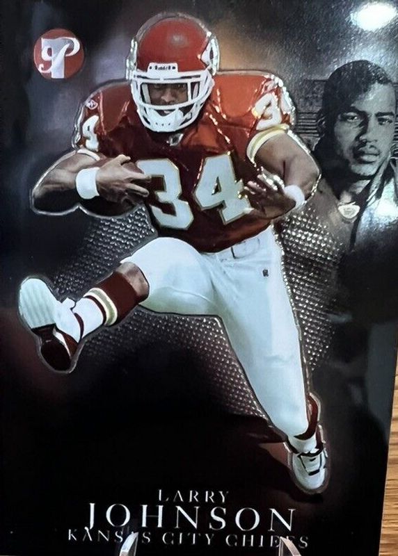 This card is 1 of 9 Larry Johnson (NFL)'s card variations in the 2003 Topps Pristine set being tracked by Sports Card Investor, including Base (Common), Base (Uncommon) /1499, Rookie Refractor (Common) /1449, Rookie Refractor (Uncommon) /499, and Rookie Refractor (Rare) /99.