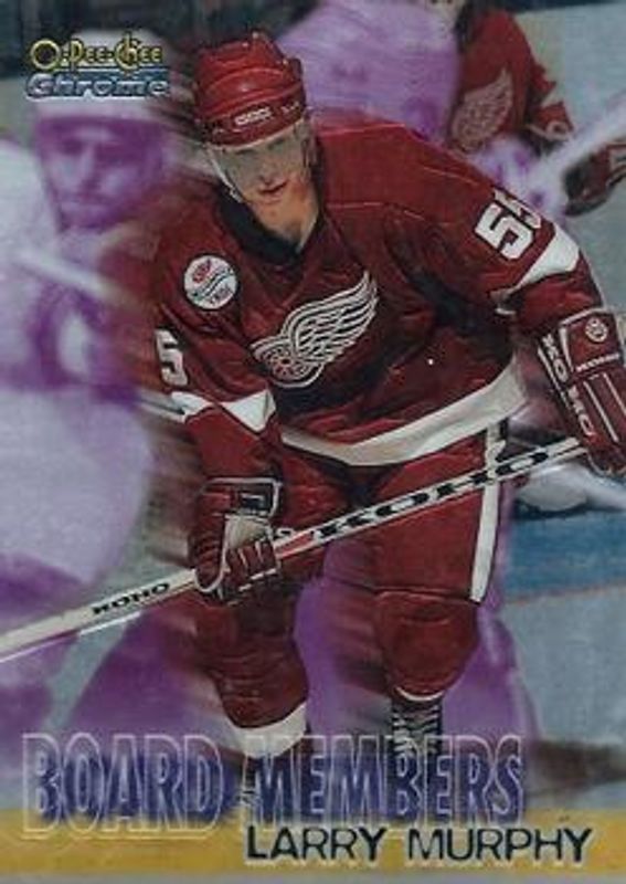 The Larry Murphy 1998 O-Pee-Chee Chrome #B9 Board Members card is 1 of 6 Larry Murphy's card variations in the 1998 O-Pee-Chee Chrome set being tracked by Sports Card Investor, including Base, Refractor, Board Members Refractor, Season's Best, and Season's Best Refractor.