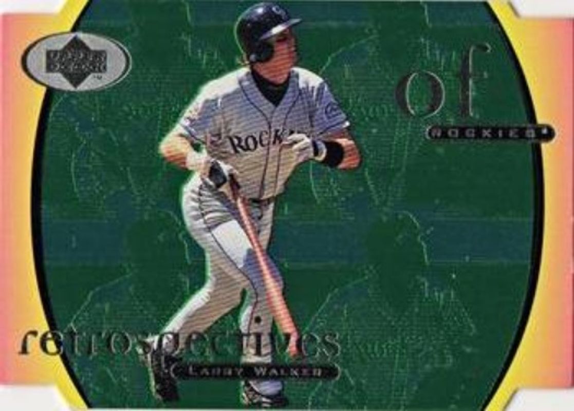 The Larry Walker 1998 Upper Deck #22 Retrospectives card is 1 of 16 Larry Walker's card variations in the 1998 Upper Deck set being tracked by Sports Card Investor, including #11 Base, #355 Base, #456 Base, #536 Base, and #624 Base.