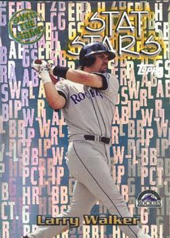 The Larry Walker 2000 Topps #OTG10 Own the Game card is 1 of 13 Larry Walker's card variations in the 2000 Topps set being tracked by Sports Card Investor, including #150 Base, #150 Home Team Advantage, #467 League Leaders - Limited Edition /4000, #461 League Leaders - Limited Edition /4000, and #150 Limited Edition /4000.