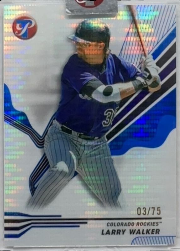 The Larry Walker 2024 Topps Pristine #34 Pristine Blue Refractor /75 card is 1 of 18 Larry Walker's card variations in the 2024 Topps Pristine set being tracked by Sports Card Investor, including Base, Pristine Refractor, Refractor, Green Refractor /150, and Pristine Purple Refractor /99.