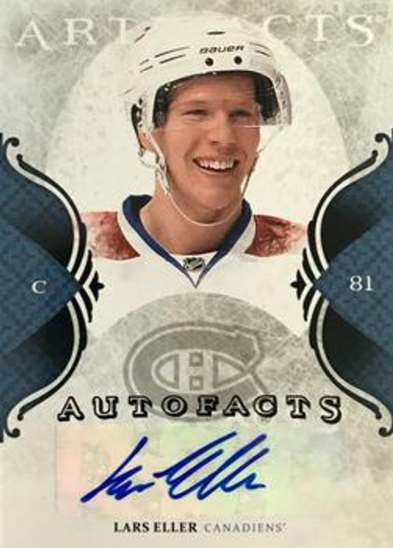 The Lars Eller 2011 Upper Deck Artifacts #A-LE Autofacts card is 1 of 20 Lars Eller's card variations in the 2011 Upper Deck Artifacts set being tracked by Sports Card Investor, including Base /699, Emerald /99, Spectrum /25, Black /5, and Frozen Artifacts Jerseys Purple.