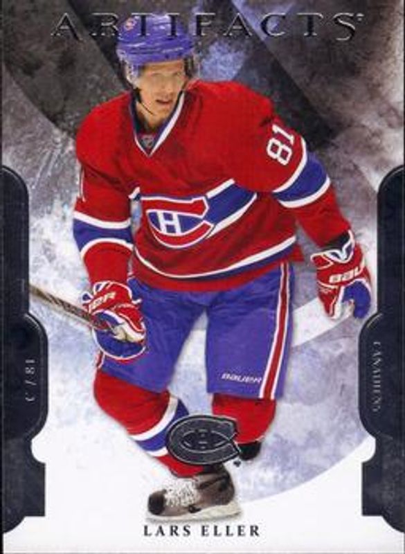 The Lars Eller 2011 Upper Deck Artifacts #36 Base /699 card is 1 of 20 Lars Eller's card variations in the 2011 Upper Deck Artifacts set being tracked by Sports Card Investor, including Emerald /99, Spectrum /25, Black /5, Autofacts, and Frozen Artifacts Jerseys Purple.