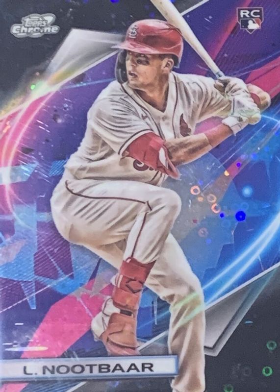 This card is 1 of 9 Lars Nootbaar's card variations in the 2022 Topps Chrome Cosmic set being tracked by Sports Card Investor, including Base, Nucleus Refractor, Refractor, Blue Moon Refractor /99, and Gold Interstellar Refractor /50.
