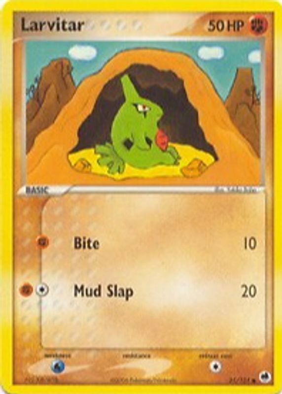 The Larvitar 2006 EX: Dragon Frontiers #051/101 Base card in Raw TCG (Near Mint) condition has moved down -$0.49 (-25.9%) in the last 30 days and was last sold for $1.40 .
