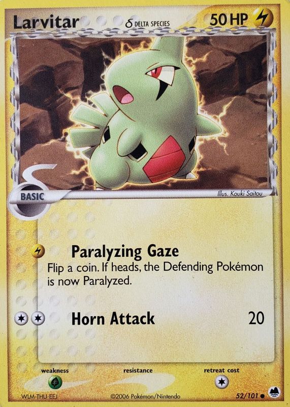 The Larvitar 2006 EX: Dragon Frontiers #052/101 Base card in Raw TCG (Lightly Played) condition has moved up $0.09 (+5.0%) in the last 30 days and was last sold for $1.99 .