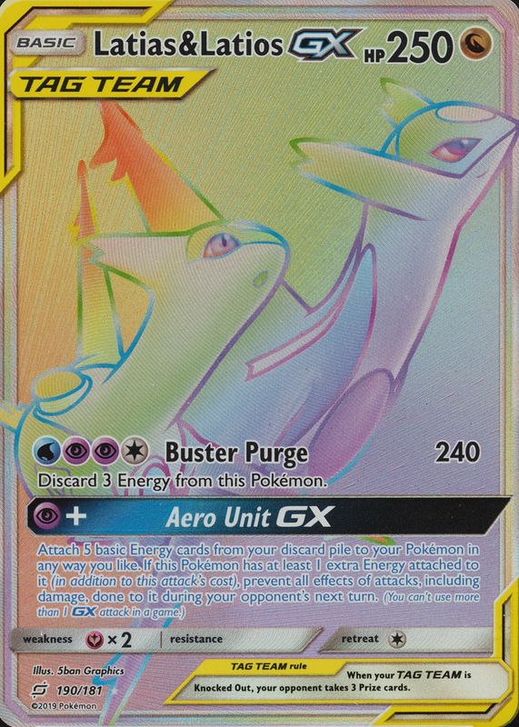 Pokemon Latias & Latios GX 190/181 Team Up Rainbow Secret Rare Near Mint