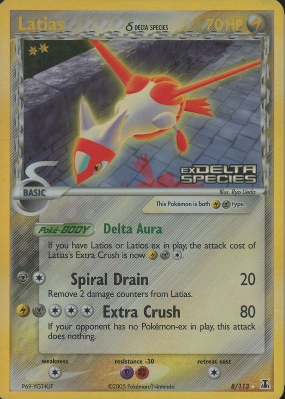 The Latias 2005 EX: Delta Species #008/113 Reverse Holo card in Raw TCG (Near Mint) condition has not changed in price in the last 30 days and was last sold for $89.99 .
