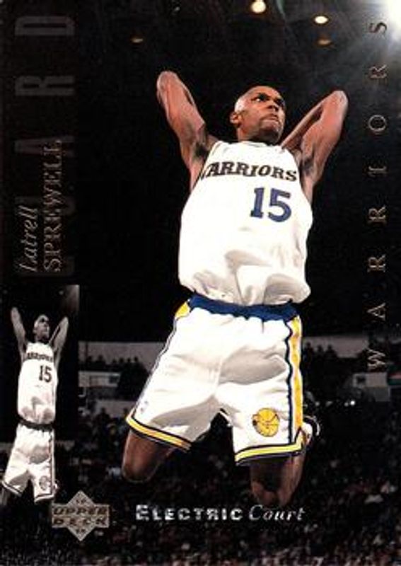 The Latrell Sprewell 1993 Upper Deck Special Edition #21 Electric Court card is 1 of 5 Latrell Sprewell's card variations in the 1993 Upper Deck Special Edition set being tracked by Sports Card Investor, including Base, Electric Court Gold, Die-Cut All-Stars - Western Conference, and Western Conference All Stars.