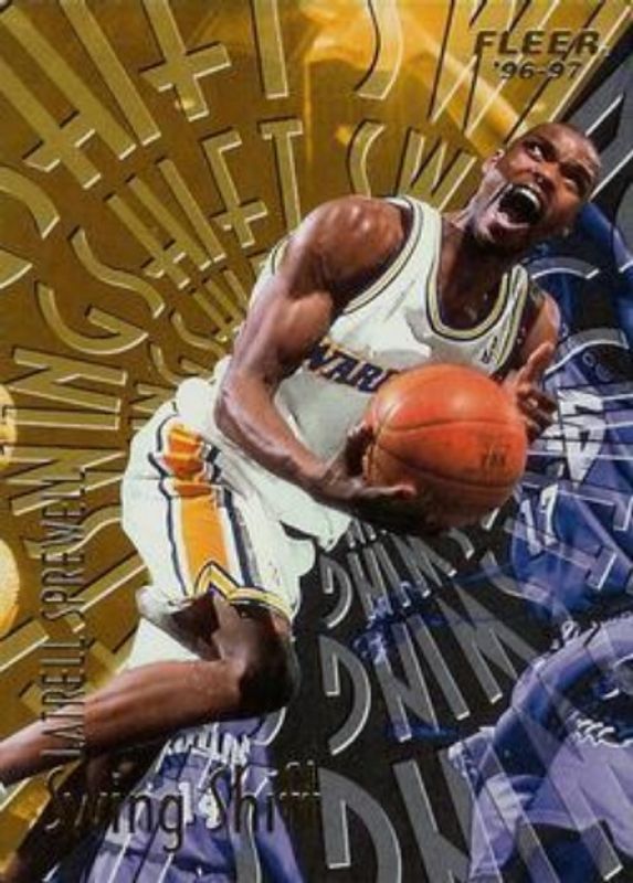 The Latrell Sprewell 1996 Fleer European #14 Swing Shift card is 1 of 3 Latrell Sprewell's card variations in the 1996 Fleer European set being tracked by Sports Card Investor, including #128 Base, and #37 Base.