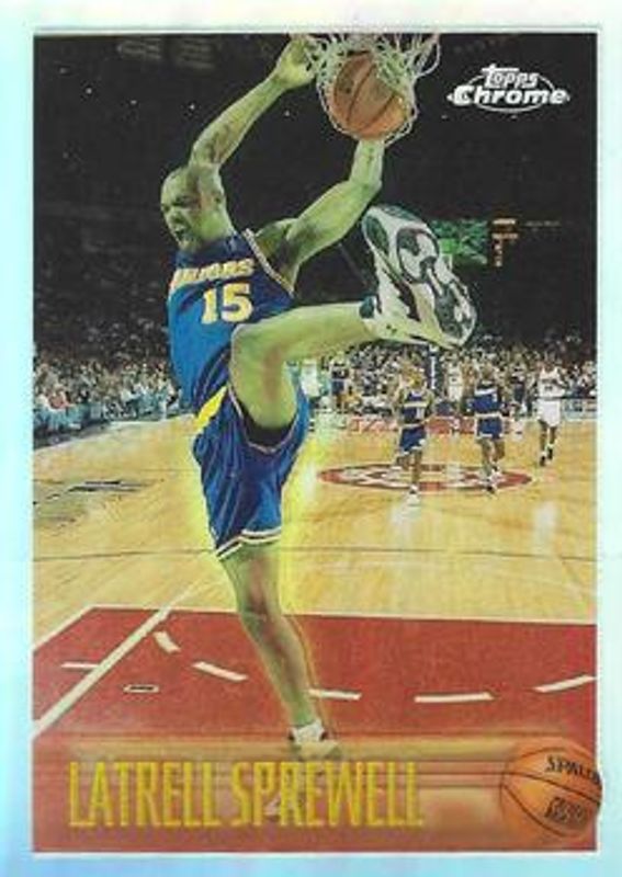 The Latrell Sprewell 1996 Topps Chrome #183R Refractor card is 1 of 3 Latrell Sprewell's card variations in the 1996 Topps Chrome set being tracked by Sports Card Investor, including Base, and Refractor.
