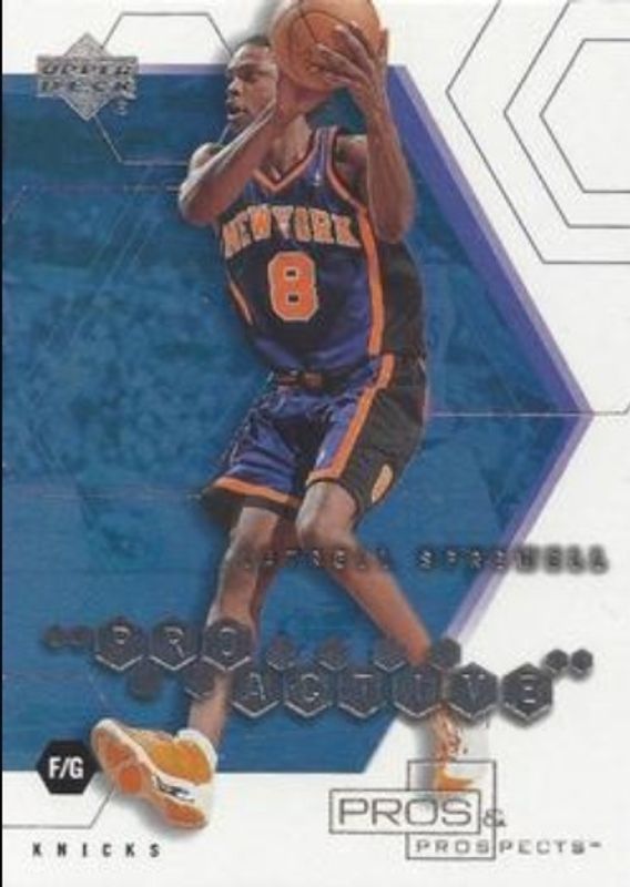 The Latrell Sprewell 2001 Upper Deck Pros & Prospects #PA-7 ProActive card is 1 of 3 Latrell Sprewell's card variations in the 2001 Upper Deck Pros & Prospects set being tracked by Sports Card Investor, including Base /1000, and ProMotion.