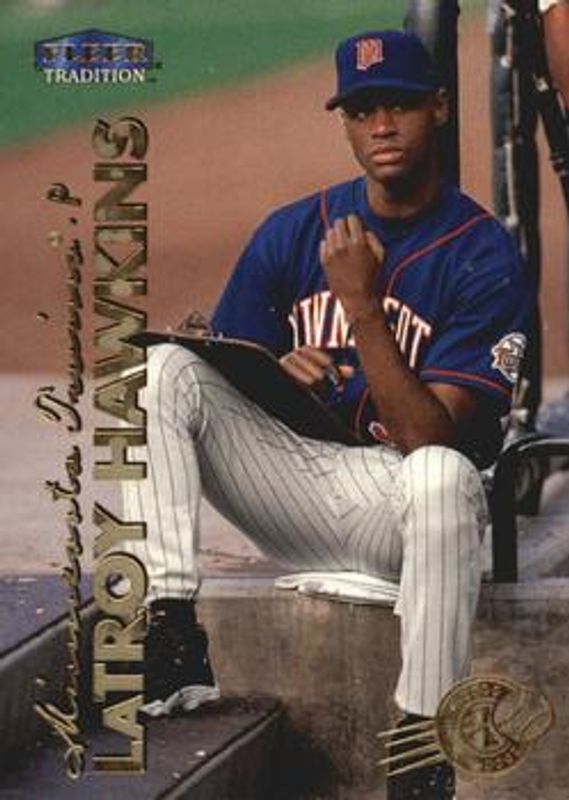 The LaTroy Hawkins 1999 Fleer Tradition #389 Millennium card is 1 of 4 LaTroy Hawkins' card variations in the 1999 Fleer Tradition set being tracked by Sports Card Investor, including Base, Warning Track Collection, and Starting 9 /9.