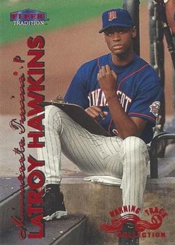 The LaTroy Hawkins 1999 Fleer Tradition #389W Warning Track Collection card is 1 of 4 LaTroy Hawkins' card variations in the 1999 Fleer Tradition set being tracked by Sports Card Investor, including Base, Millennium, and Starting 9 /9.
