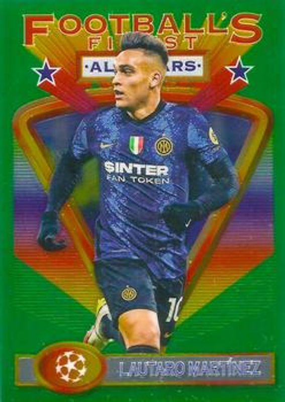 The Lautaro Martinez 2021 Topps Finest Flashbacks UEFA Champions League #18 Base card is 1 of 20 Lautaro Martinez's card variations in the 2021 Topps Finest Flashbacks UEFA Champions League set being tracked by Sports Card Investor, including Refractor, Gold Refractor /50, Prism Refractor /35, Black Refractor /25, and Red Refractor /5.