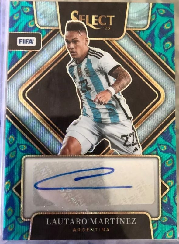 Lautaro Martinez 2022 Select FIFA #S-LMA Signatures Peacock RAW Price Guide
