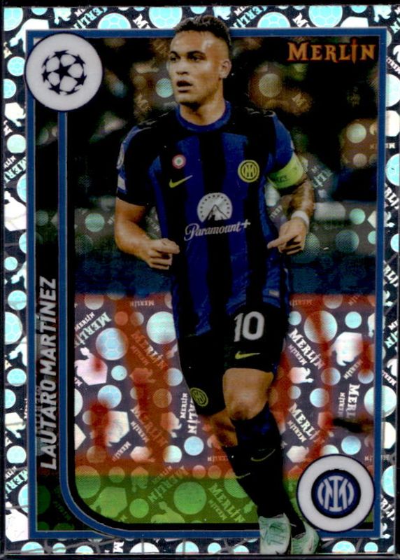 The Lautaro Martinez 2023 Topps Merlin Chrome UEFA Club Competitions #48 Vintage Merlin Refractor card is 1 of 45 Lautaro Martinez's card variations in the 2023 Topps Merlin Chrome UEFA Club Competitions set being tracked by Sports Card Investor, including Base, Aqua Prism Refractor, Refractor, Neon Green Shimmer Refractor /399, and Rose Gold Shimmer Refractor /299.