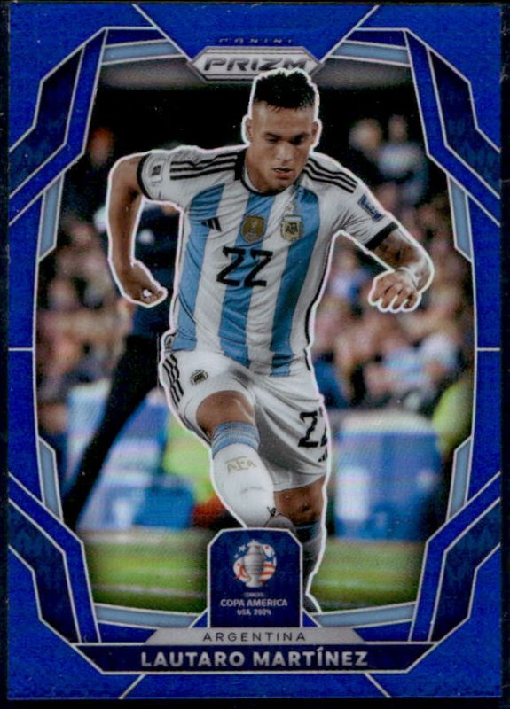 The Lautaro Martinez 2024 Prizm Copa America #2 Blue /110 card is 1 of 47 Lautaro Martinez's card variations in the 2024 Prizm Copa America set being tracked by Sports Card Investor, including Base, Green Ice, Green Wave, Hyper, and Ice.