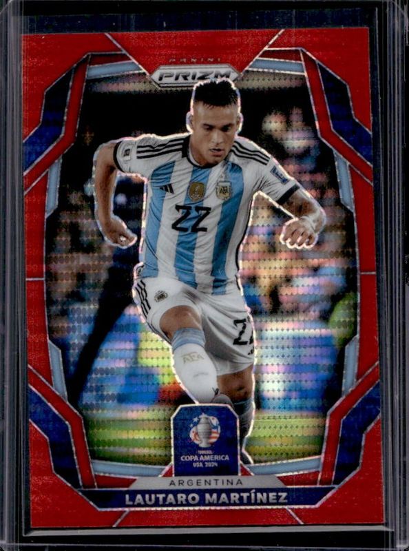 The Lautaro Martinez 2024 Prizm Copa America #2 Red Pulsar /125 card is 1 of 47 Lautaro Martinez's card variations in the 2024 Prizm Copa America set being tracked by Sports Card Investor, including Base, Green Ice, Green Wave, Hyper, and Ice.