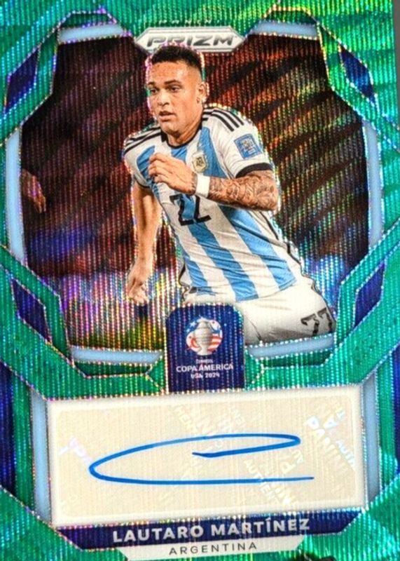 This card is 1 of 47 Lautaro Martinez's card variations in the 2024 Prizm Copa America set being tracked by Sports Card Investor, including Base, Green Ice, Green Wave, Hyper, and Ice.