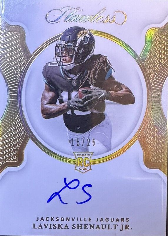 The Laviska Shenault Jr. 2020 Flawless #FRS-LSH Flawless Rookie Signatures (/25) card in Raw condition has not changed in price in the last 30 days and was last sold for $3.25 .