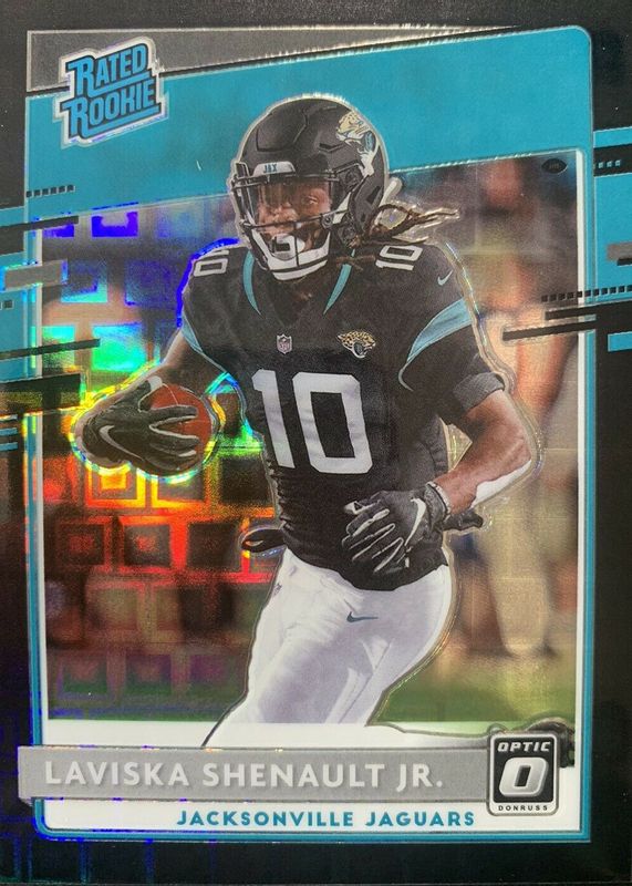 The Laviska Shenault Jr. 2020 Optic #168 Black Pandora /25 Rookie card in Raw condition has not changed in price in the last 30 days and was last sold for $4.99 .