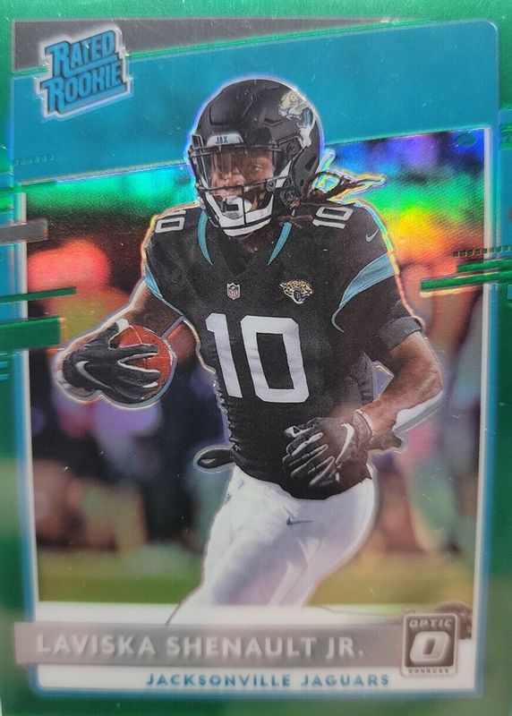 The Laviska Shenault Jr. 2020 Optic #168 Green /5 Rookie card in Raw condition has not changed in price in the last 30 days and was last sold for $38.00 .
