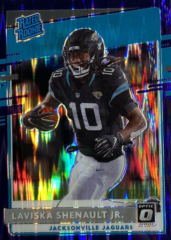 The Laviska Shenault Jr. 2020 Optic #168 Purple Shock Rookie card in Raw condition has not changed in price in the last 30 days and was last sold for $1.19 .