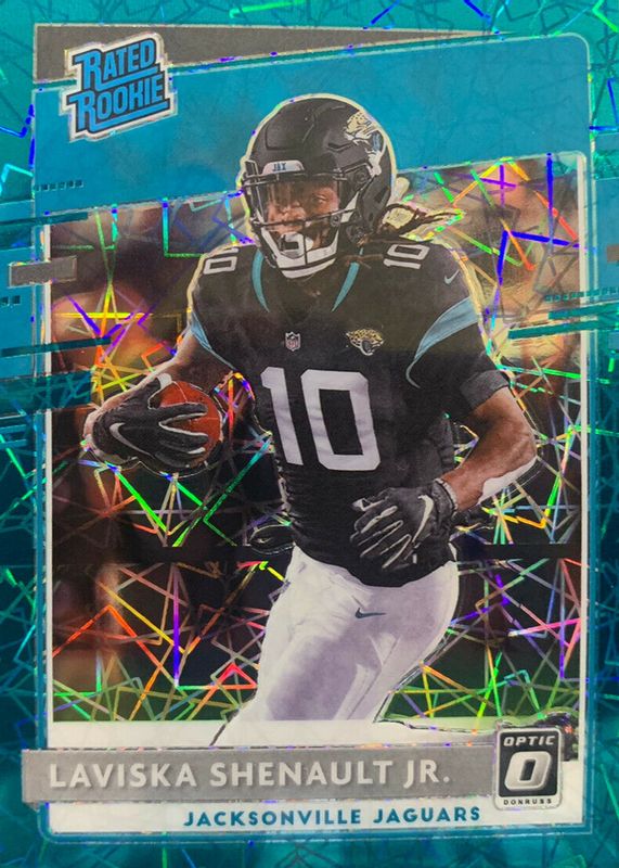 The Laviska Shenault Jr. 2020 Optic #168 Teal Velocity Rookie card in Raw condition has not changed in price in the last 30 days and was last sold for $1.50 .