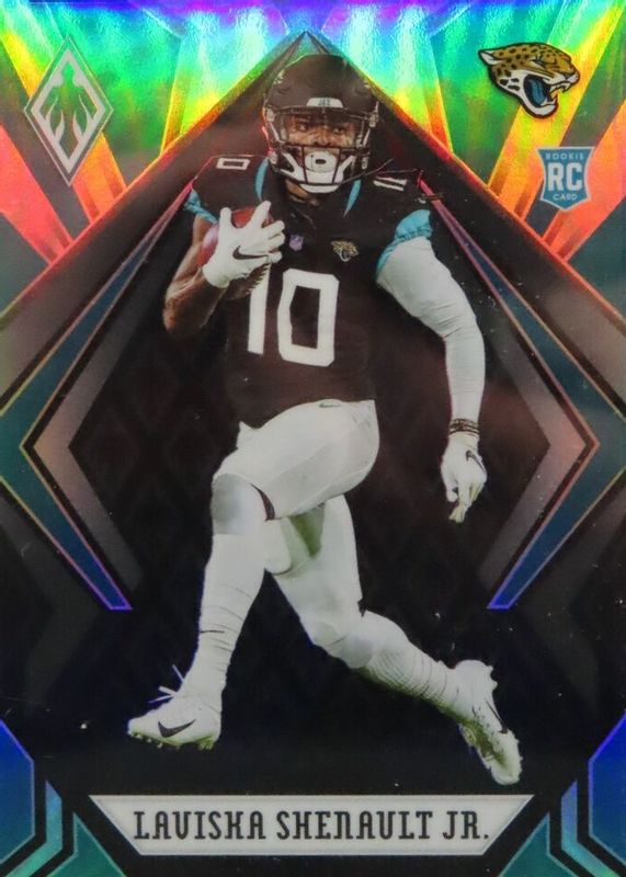 The Laviska Shenault Jr. 2020 Phoenix #119 Black /10 Rookie card in Raw condition has not changed in price in the last 30 days and was last sold for $49.99 .
