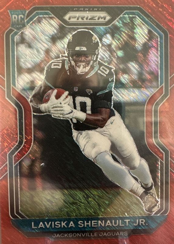 The Laviska Shenault Jr. 2020 Prizm #350 FOTL Red Shimmer /35 Rookie card in Raw condition has not changed in price in the last 30 days and was last sold for $0.99 .