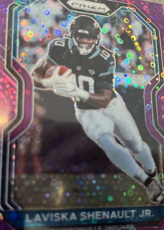 This card is 1 of 68 Laviska Shenault Jr.'s card variations in the 2020 Prizm set being tracked by Sports Card Investor, including Base, Disco, Green, Lazer, and Light Blue.