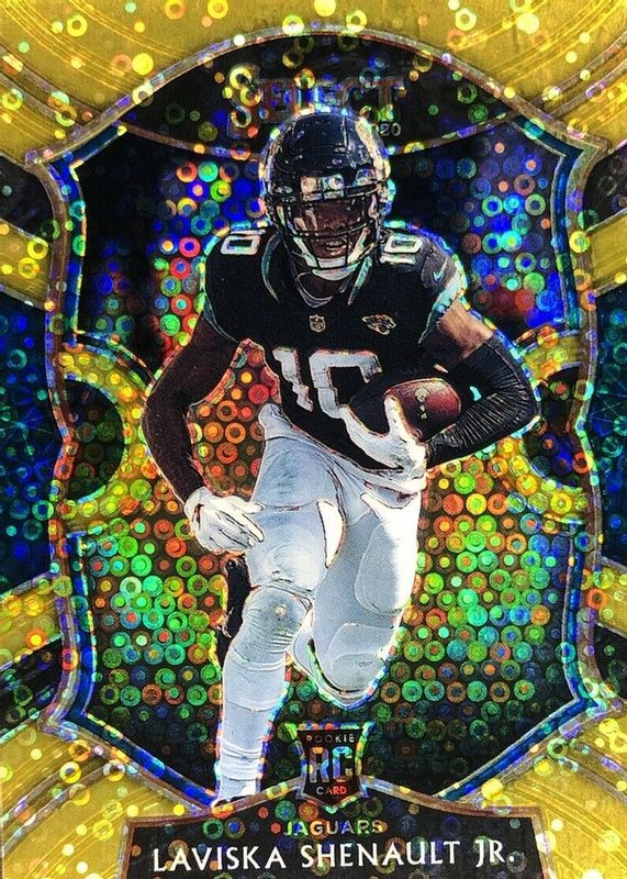 The Laviska Shenault Jr. 2020 Select #59 Concourse Gold /10 Rookie card in Raw condition has not changed in price in the last 30 days and was last sold for $8.26 .