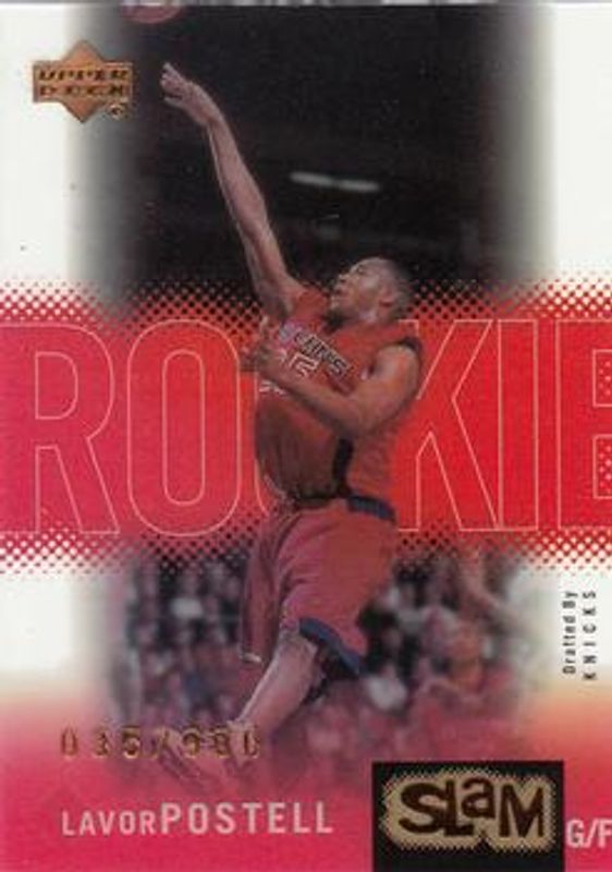 The Lavor Postell 2000 Upper Deck Slam #82 Base /2500 Rookie card is 1 of 3 Lavor Postell's card variations in the 2000 Upper Deck Slam set being tracked by Sports Card Investor, including Extra Strength Silver /500, and Extra Strength Gold /25.