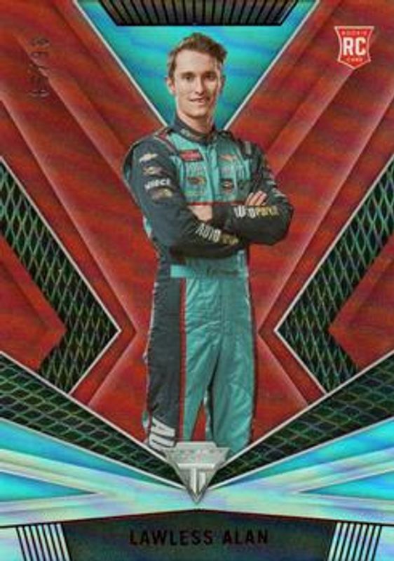 The Lawless Alan 2023 Chronicles NASCAR #12 Titanium - Red /99 card is 1 of 95 Lawless Alan's card variations in the 2023 Chronicles NASCAR set being tracked by Sports Card Investor, including Base, Blue /199, Red /99, Purple /25, and Gold /10.
