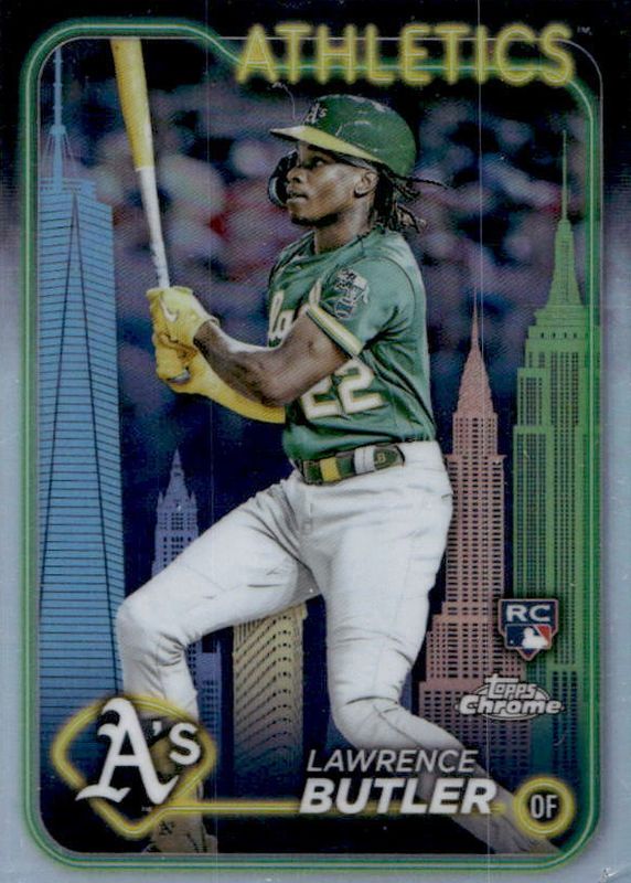 The Lawrence Butler 2024 Topps Chrome #5 Big Apple Refractor /(SSP) Rookie card in Raw condition has not changed in price in the last 30 days and was last sold for $26.50 .