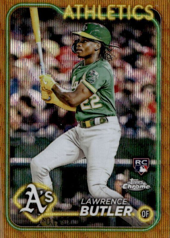 The Lawrence Butler 2024 Topps Chrome #5 Gold Wave Refractor /50 Rookie card in Raw condition has not changed in price in the last 30 days and was last sold for $37.00 .