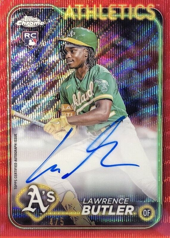 Auctions Ending Soon for Lawrence Butler 2024 Topps Chrome #RA-LBU Rookie Autographs - Red Wave Refractor /5 RAW
