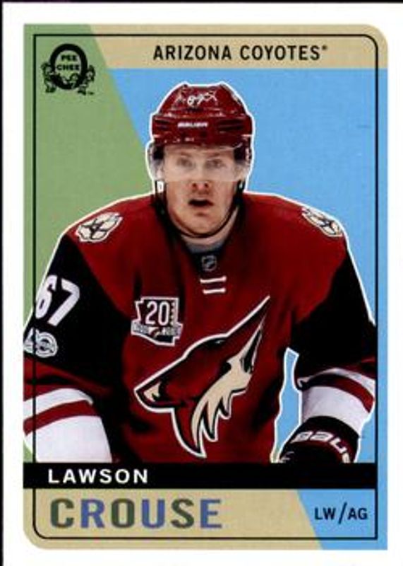 The Lawson Crouse 2017 O-Pee-Chee #20 Retro card is 1 of 6 Lawson Crouse's card variations in the 2017 O-Pee-Chee set being tracked by Sports Card Investor, including Base, Rainbow Foil, Red, Retro Blank Back, and Black Rainbow Foil /100.
