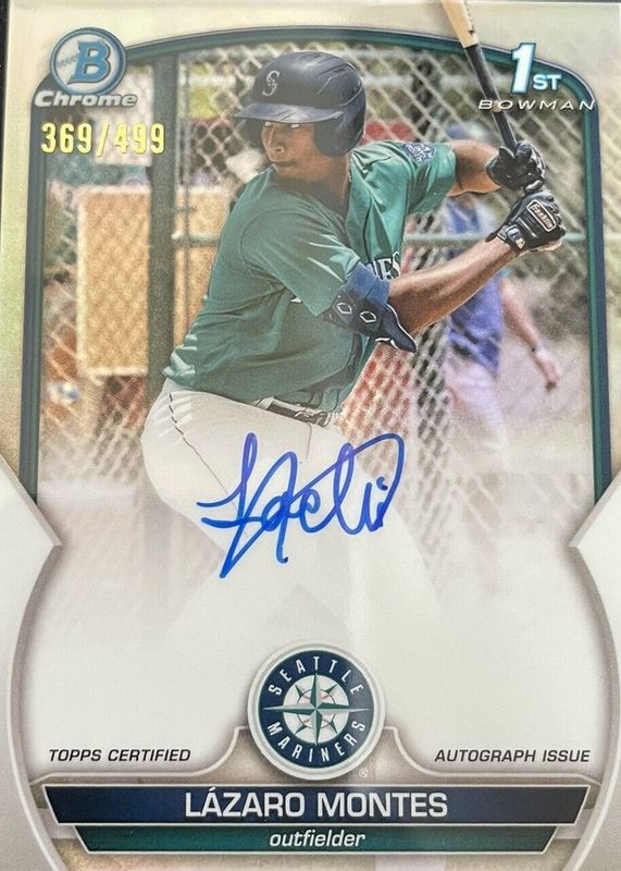 The Lazaro Montes 2023 Bowman #CPA-LM Chrome Prospect Auto - Refractor /499 (1st) card in Raw condition has not changed in price in the last 30 days and was last sold for $110.00 .